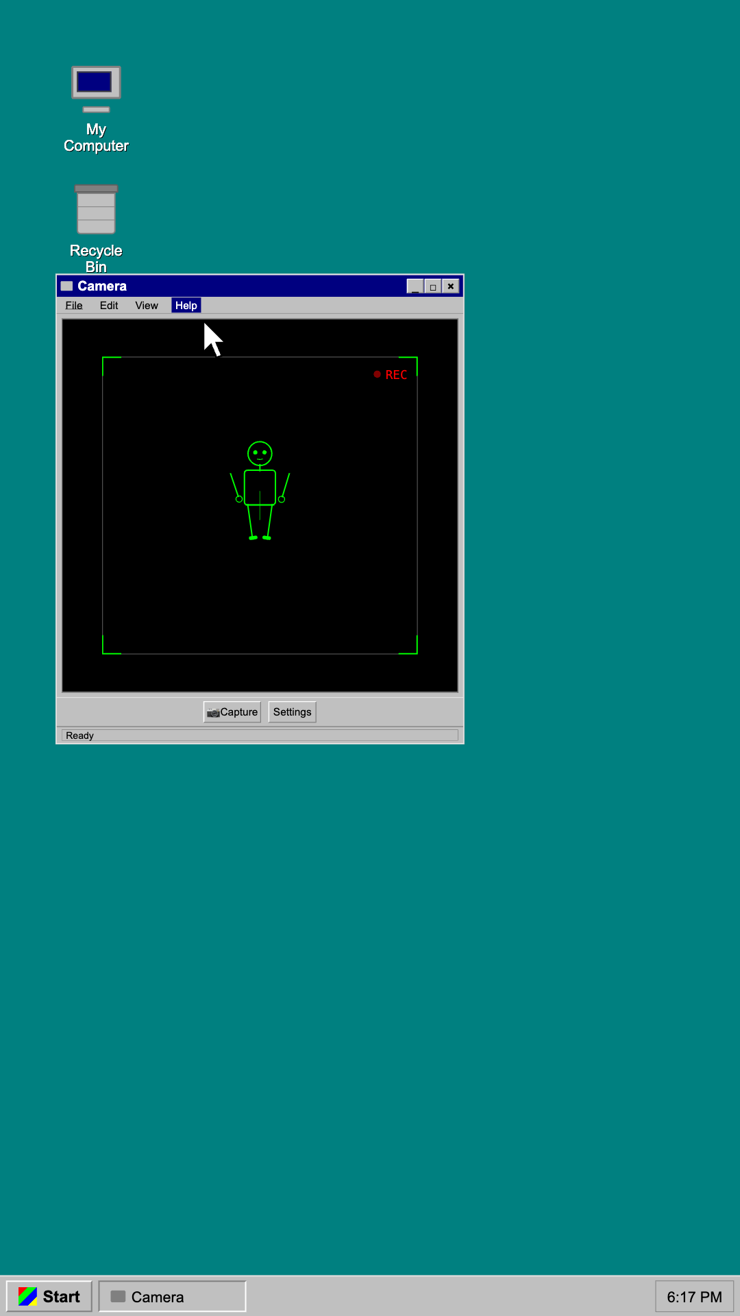 animate me a win 98 style animation for camera app click and expand ...