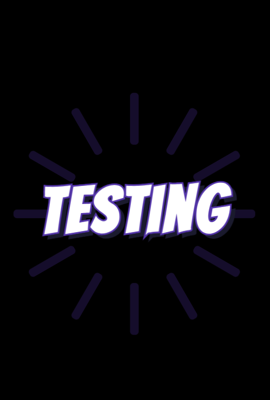 Slide in text animation with the word "Testing" in purple