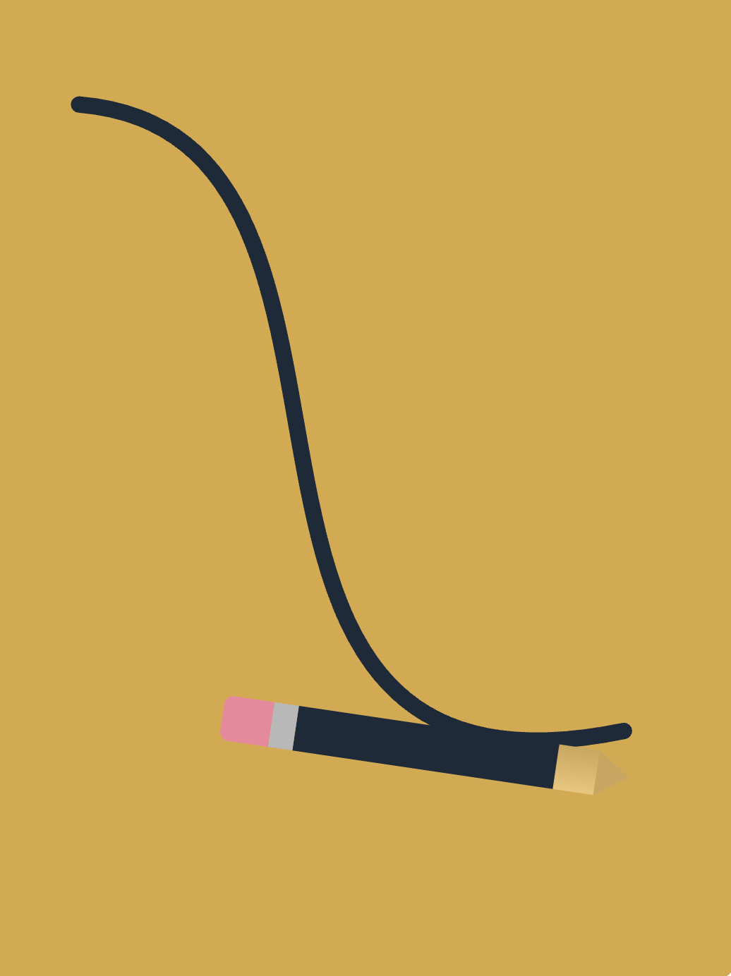 Animated pencil drawing a bezier curve path on canvas
